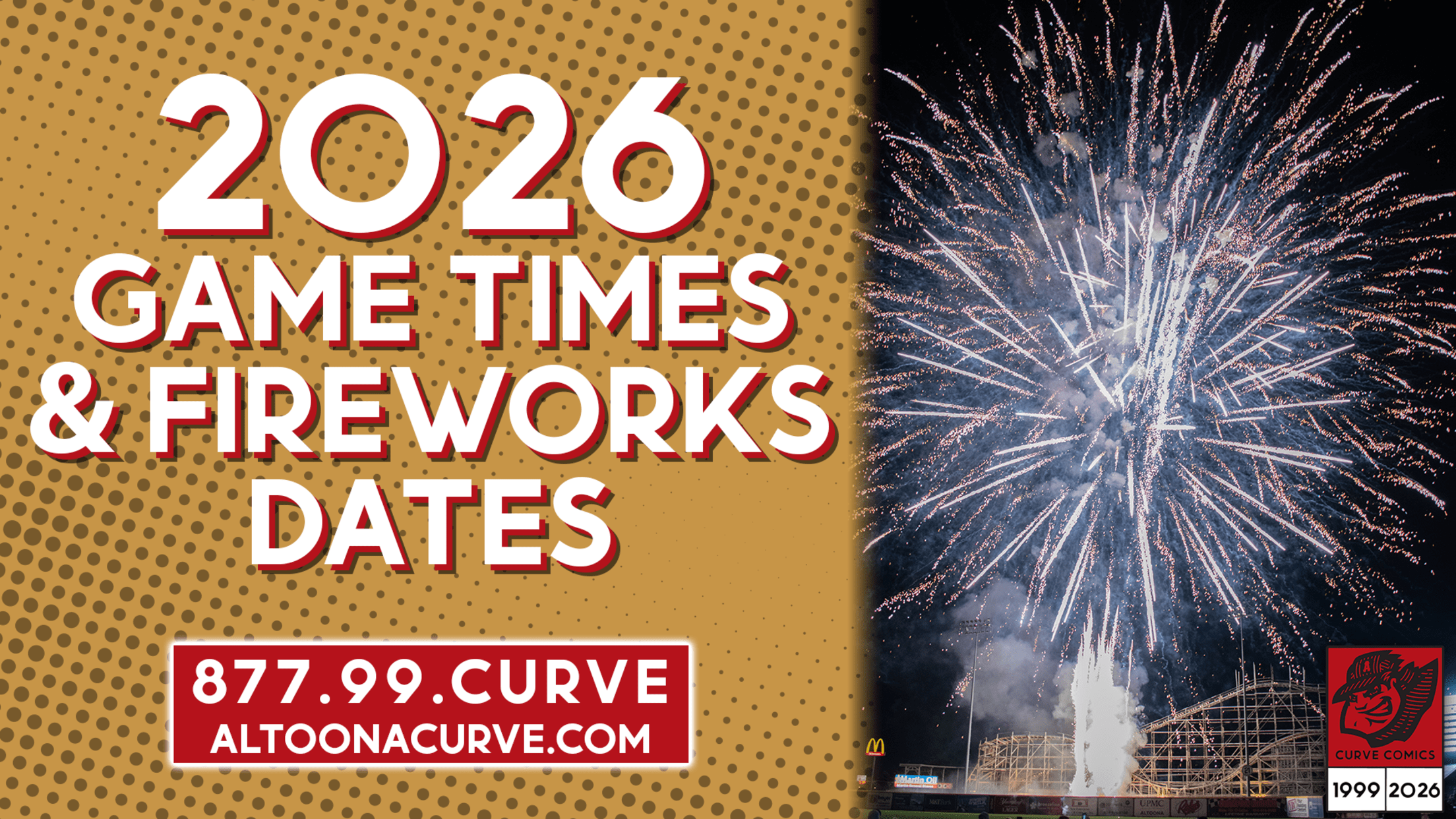 CURVE, PA – The Altoona Curve, Double-A affiliate of the Pittsburgh Pirates, are pleased to announce home game times and fireworks dates for the 2026 season, presented by Stuckey Automotive. Game times are subject to change. The 2026 season will once again feature 6:00 p.m. start times for many of