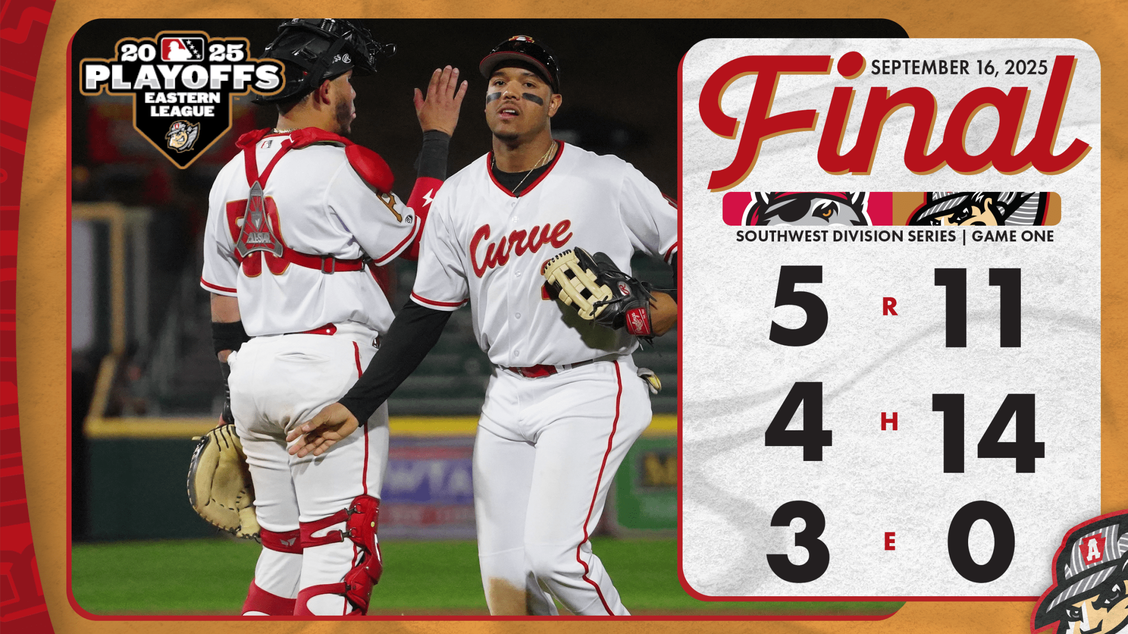 CURVE, Pa. – Altoona rallied for seven runs in the sixth inning and held on for an 11-5 win over the Erie SeaWolves in Game One of the Southwest Division series. The Curve hold a 1-0 game lead in the Best-of-Three series with the SeaWolves. Esmerlyn Valdez homered in the