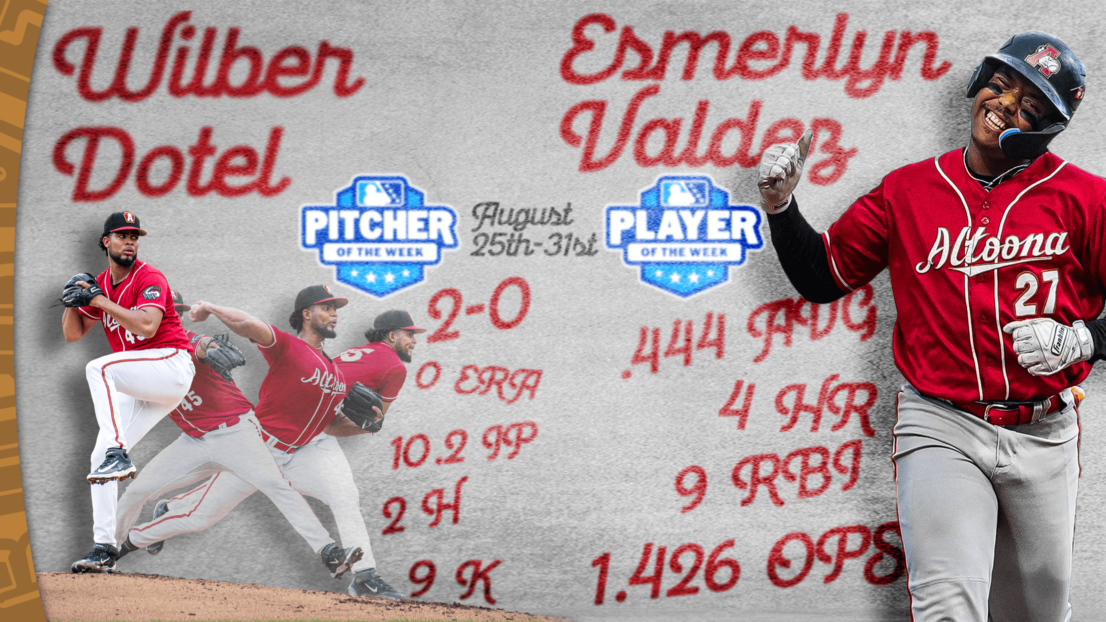 CURVE, PA – Pitcher Wilber Dotel was named the Eastern League Pitcher of the Week and Esmerlyn Valdez was named the Eastern League Player of the Week on Monday after their brilliant performances during last week’s series at Harrisburg. The awards mark the second and third weekly award winners this