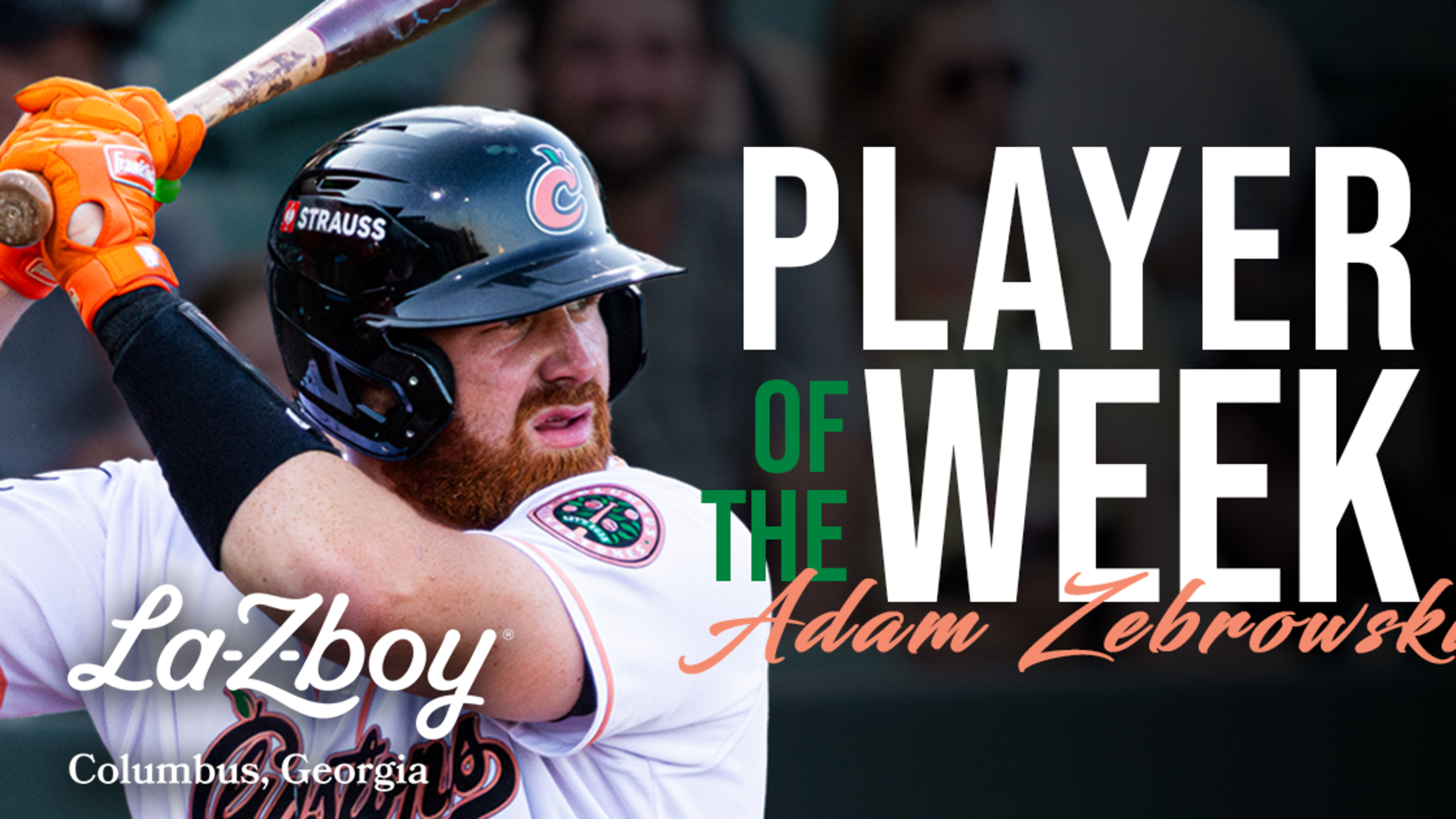 COLUMBUS, Ga. — The Columbus Clingstones and La-Z-Boy proudly announce that C Adam Zebrowski has been named La-Z-Boy of Columbus Player of the Week for September 1-8. Zebrowski, 24, turned in a strong series from September 2-7 vs. Montgomery, hitting safely in all five games he played and batting .444