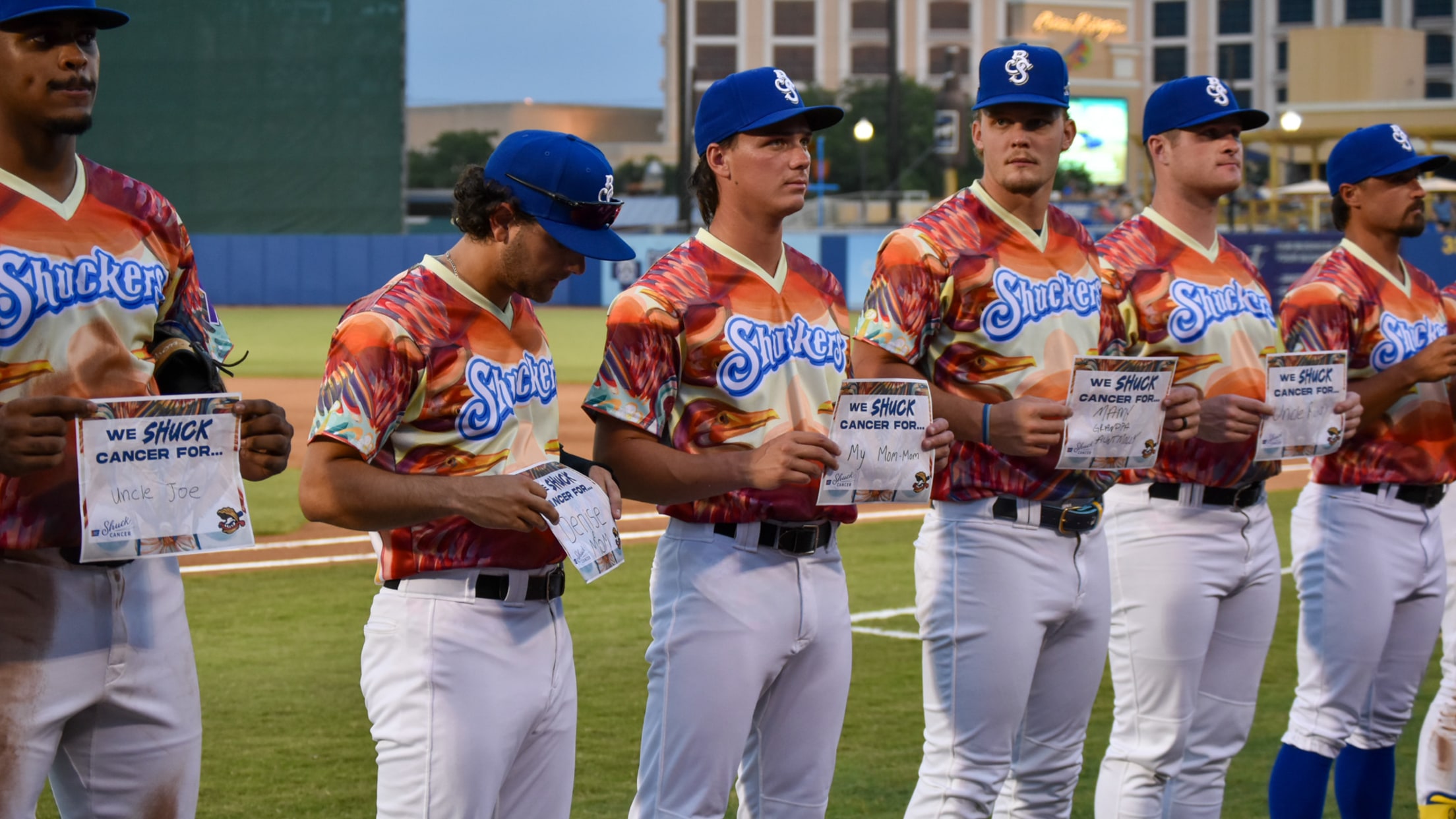 BILOXI, MS – The Tennessee Smokies (36-25) used four early runs and an eight-run ninth inning in a 13-3 loss for the Biloxi Shuckers (24-36) at Keesler Federal Park on Friday night. During the game, the Shuckers held their annual Shuck Cancer Night, complete with specialty jerseys designed by local artist Julia Reyes and an in-game recognition for those who have battled and are currently battling cancer.
