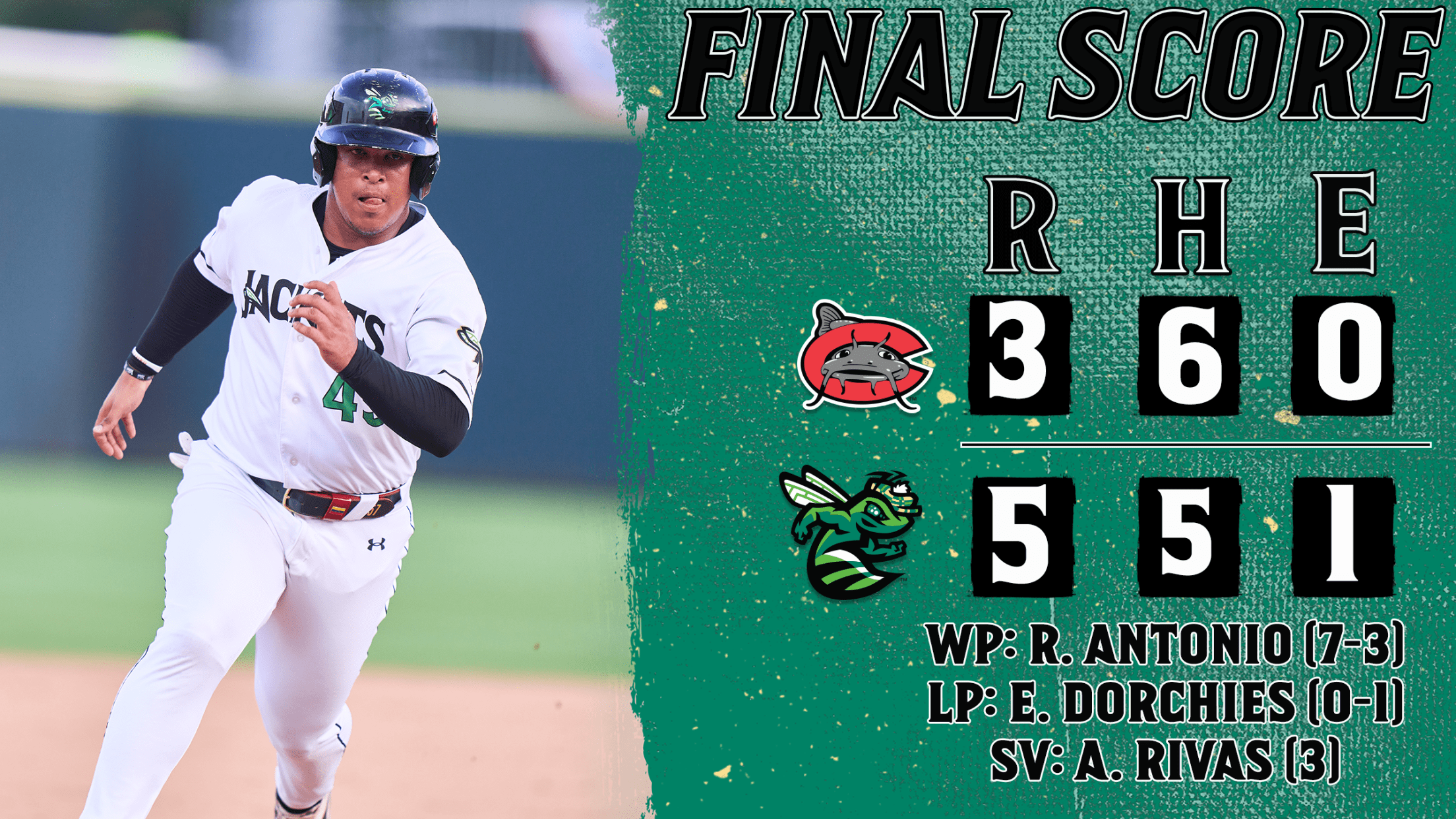 The GreenJackets retaliated once more the next half inning, as Douglas Glod muscled a two-out home run off of Jayden Dubanewicz for Augusta’s final run. Albert Rivas was summoned for the six-out save, and despite running into some trouble in the 9th (allowing a run and walking the bases loaded with two outs), he was able to secure the victory and the series win.
