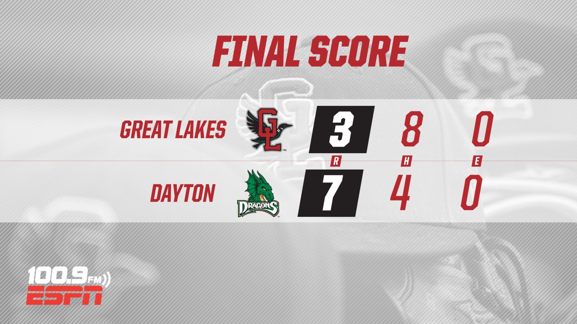 In the first three innings, Dragons starter Carson Rudd faced the minimum. Great Lakes touted just three hits off Rudd over five innings, the lone run a solo homer from Yunior Garcia. Garcia’s first homer at the High-A level, the 21-year-old went 2-4.