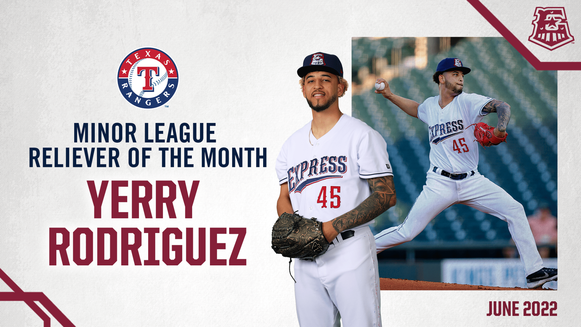 Express RHP Yerry Rodriguez Named Rangers Reliever of the Month