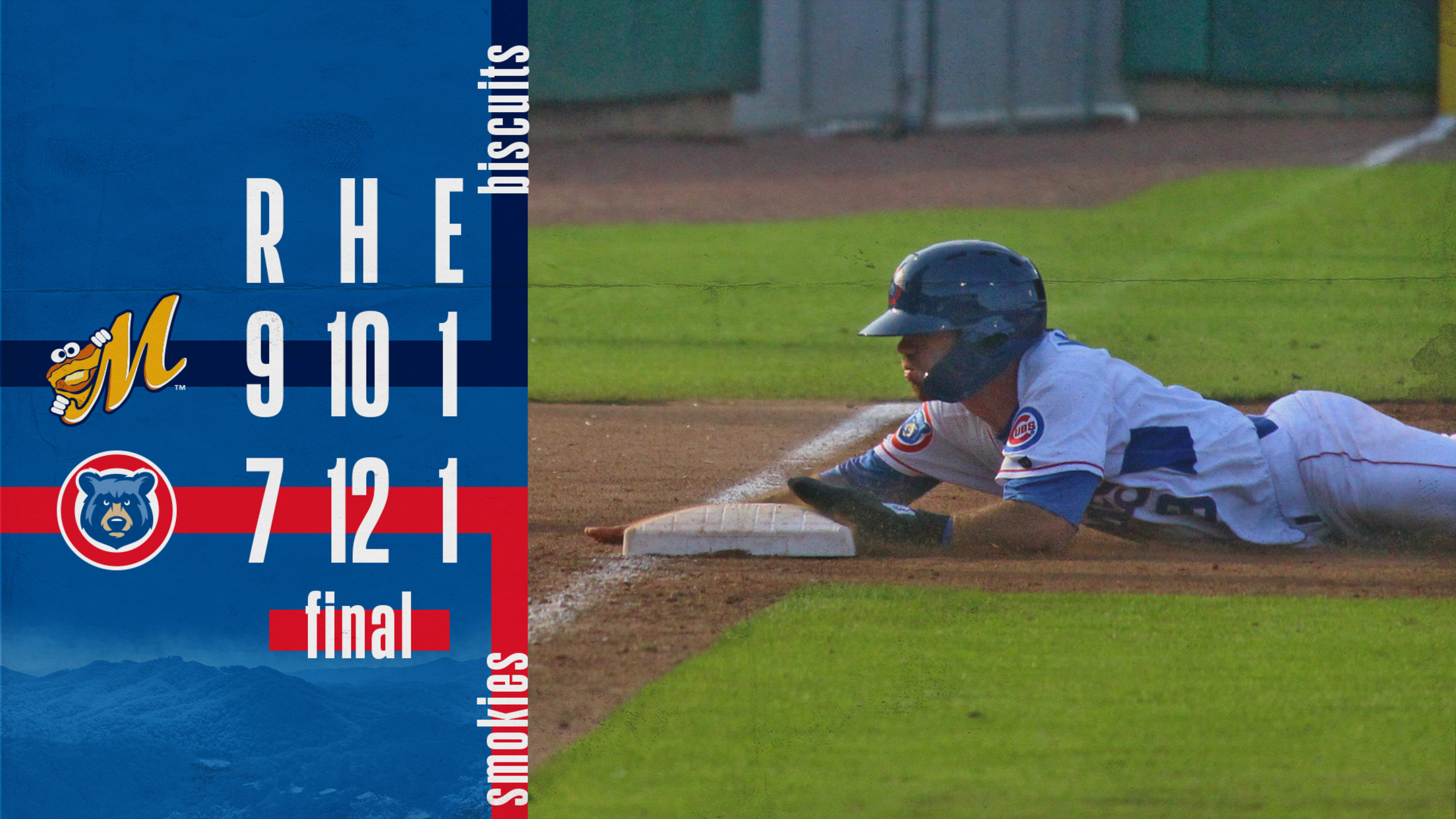 Both offenses combined for 22 hits in a hitting barrage; however, the Tennessee Smokies (34-39, 1-3) came up short against the Montgomery Biscuits (46-27, 2-1) 9-7 at Smokies Stadium on Sunday night.