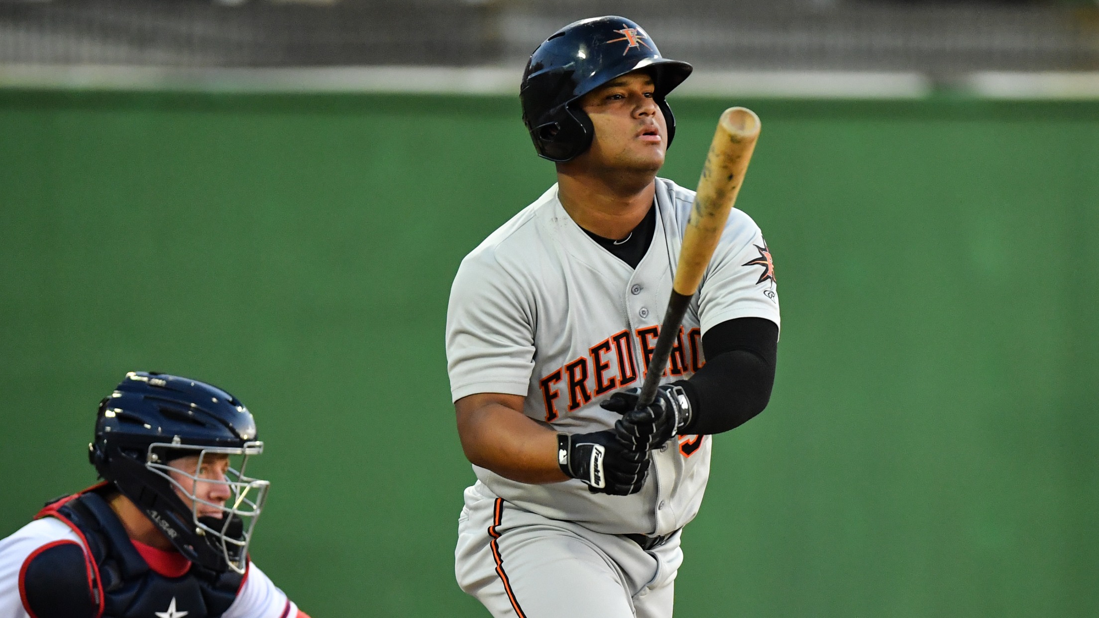 Wilson Garcia has been showing off double vision lately, and he provided the fireworks again Wednesday.For the ninth time in eight games, Baltimore's first-base prospect went yard. He blasted two long balls for the second consecutive game in the Class A Advanced Frederick's 5-3 loss to Carolina at Five County