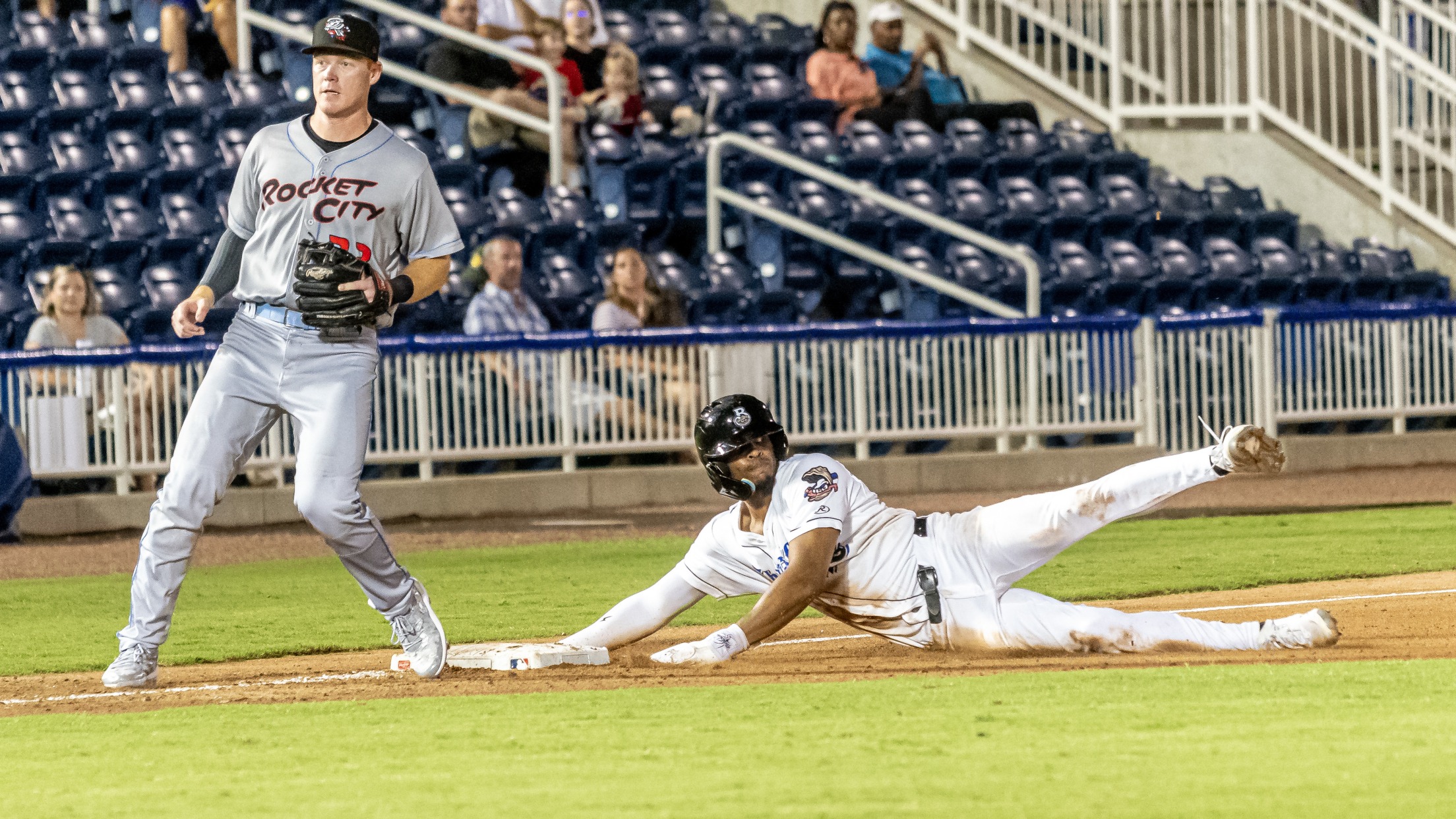 MADISON, AL – With web-gem plays from Ethan Murray and Ernesto Martinez Jr. in the late innings and five shutout innings from the bullpen, the Biloxi Shuckers (62-65, 32-28) held on for a 3-2 win over the Rocket City Trash Pandas (57-71, 24-36) on Thursday night at Toyota Field. With