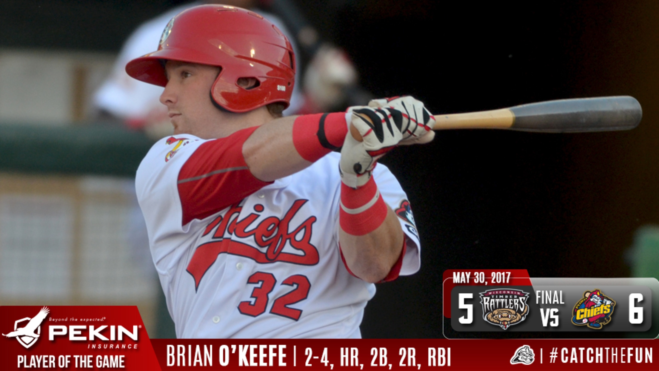 Peoria, IL - The Peoria Chiefs beat the Wisconsin Timber Rattlers in game one of a three-game set on Tuesday by a final of 6-5. The Chiefs are 20-31 overall with game two scheduled for Wednesday with a 7:00 PM first pitch at Dozer Park. The Timber Rattlers took the