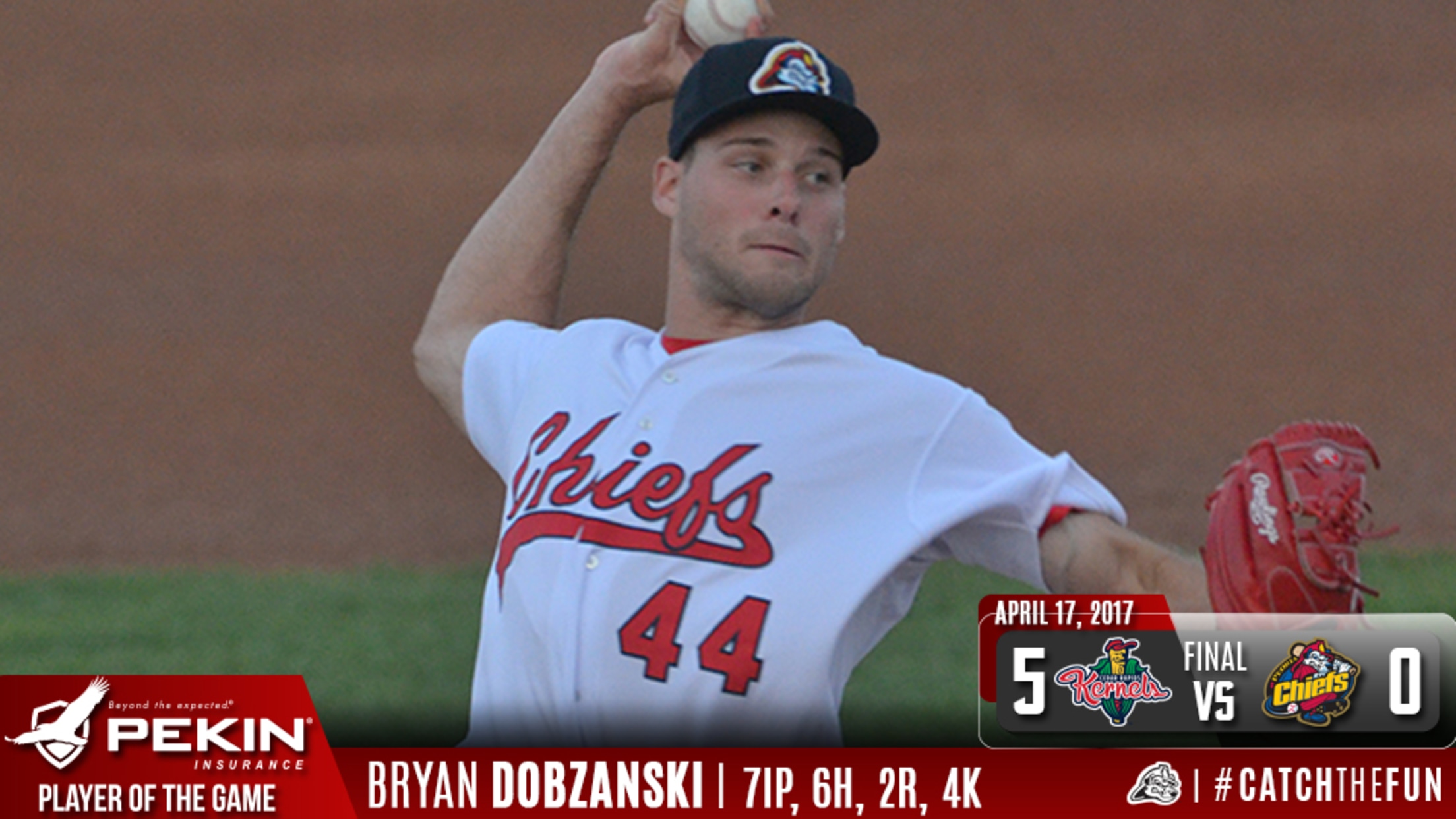Dayton, OH - The Peoria Chiefs fell behind early but rallied for their fourth straight win and a sweep of the Dayton Dragons with a 4-3 Saturday night victory. The win moves the Chiefs back over .500 at 17-16 heading into a league-wide off day.