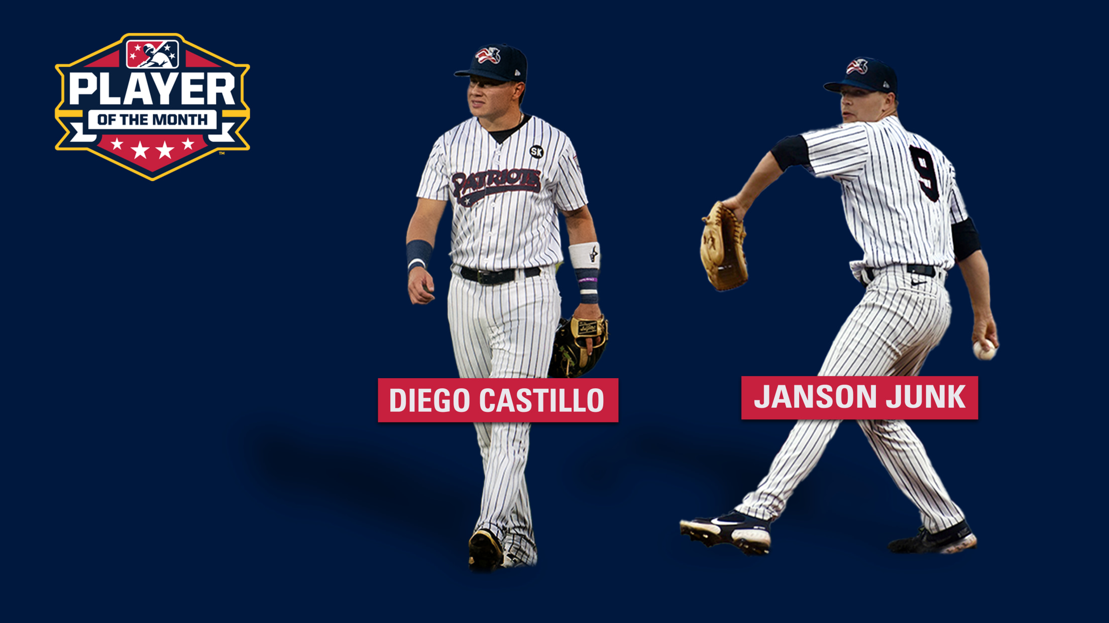 Bridgewater, New Jersey- Minor League Baseball has announced that Somerset Patriots INF Diego Castillo and RHP Janson Junk have been named the Double-A Northeast League Player and Pitcher of the Month, respectively, for June. This marks the first time that a Patriot has won an MiLB Player of the Month