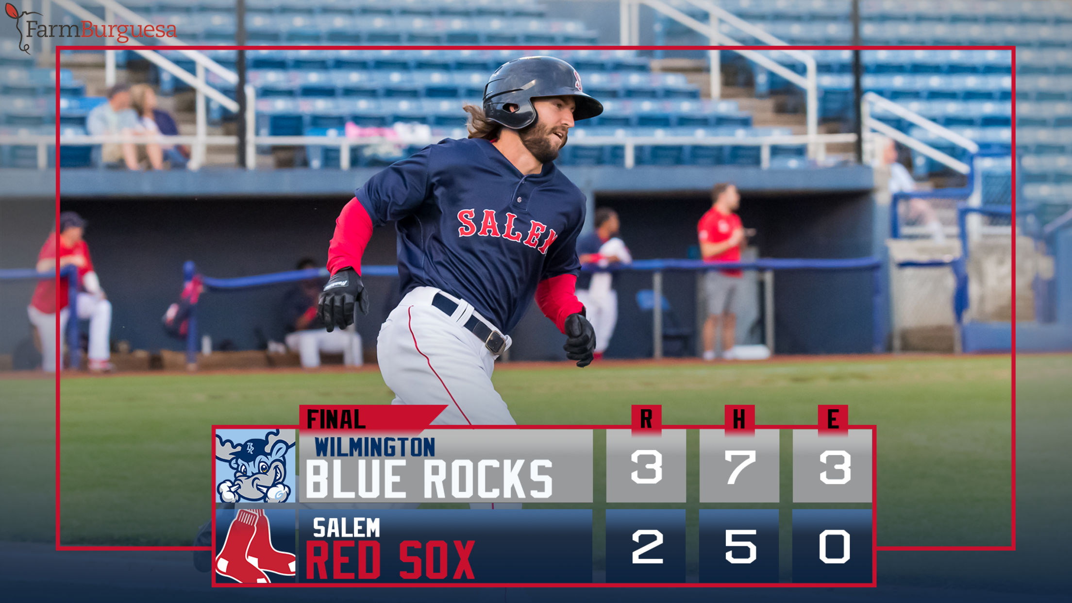 FAYETTEVILLE, North Carolina (July 1, 2019) - The Red Sox blasted three home runs to back up a scoreless performance from Jhonathan Diaz to steam roll Fayetteville 9-3 Monday night at Segra Stadium.How it Happened * Samuel Miranda cracked Salem onto the board in the third inning with a lead-off