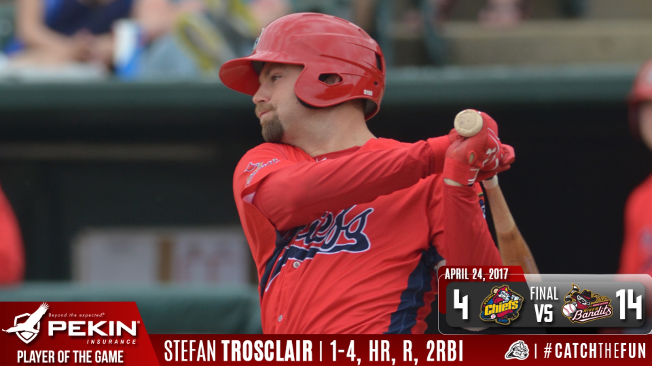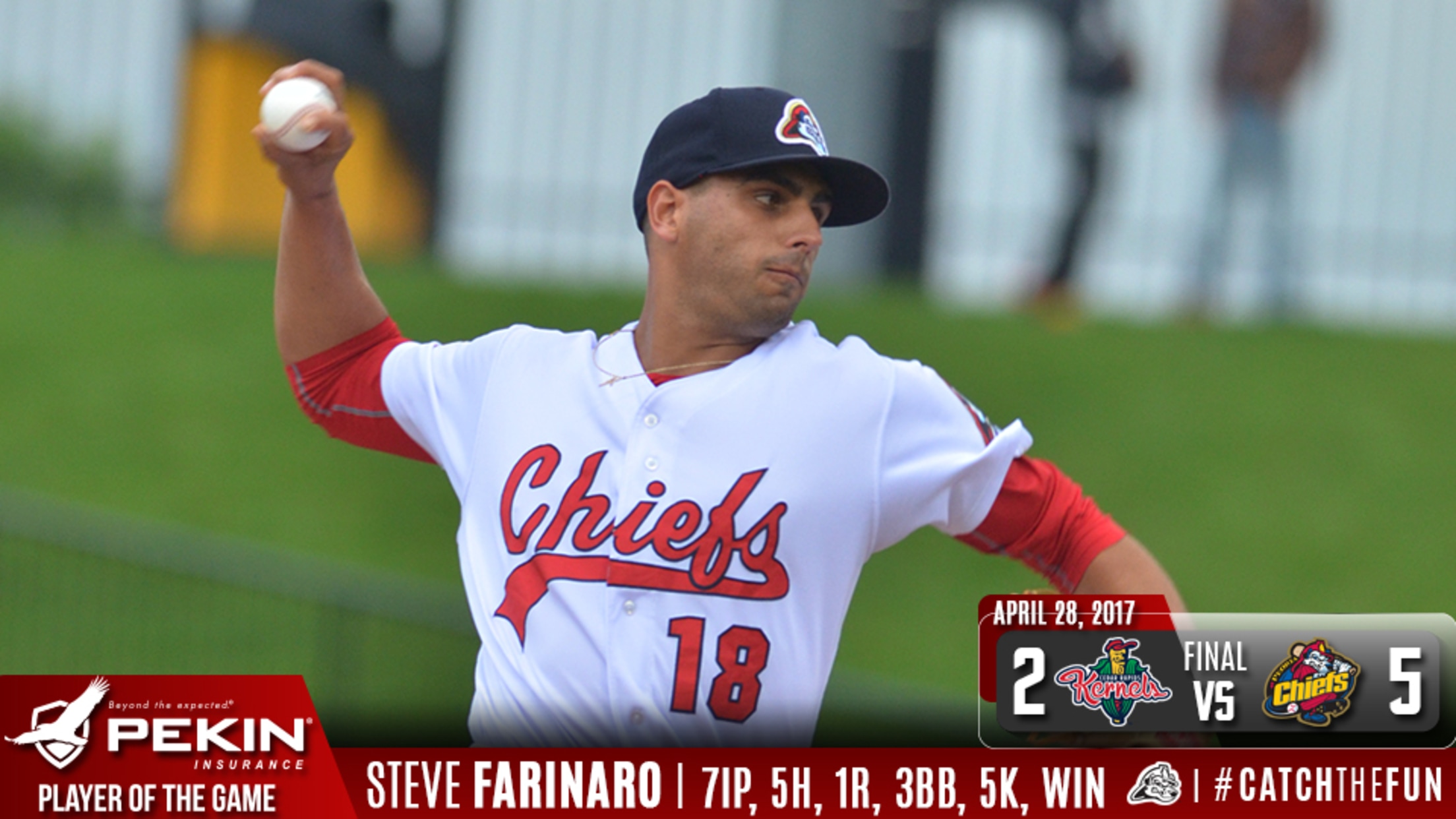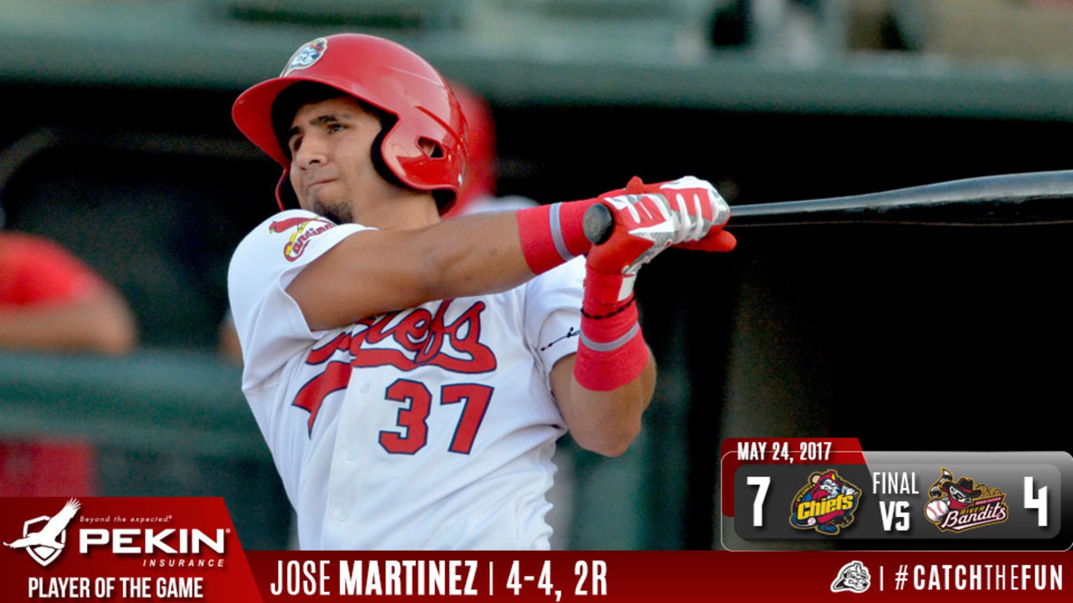 Davenport, IA - The Peoria Chiefs scored five runs in the fifth inning and held off a ninth inning rally to beat the Quad Cities River Bandits 7-4 in Iowa Wednesday night. The win jumps the Chiefs to seventh place at 17-27 on the season with one game left in the