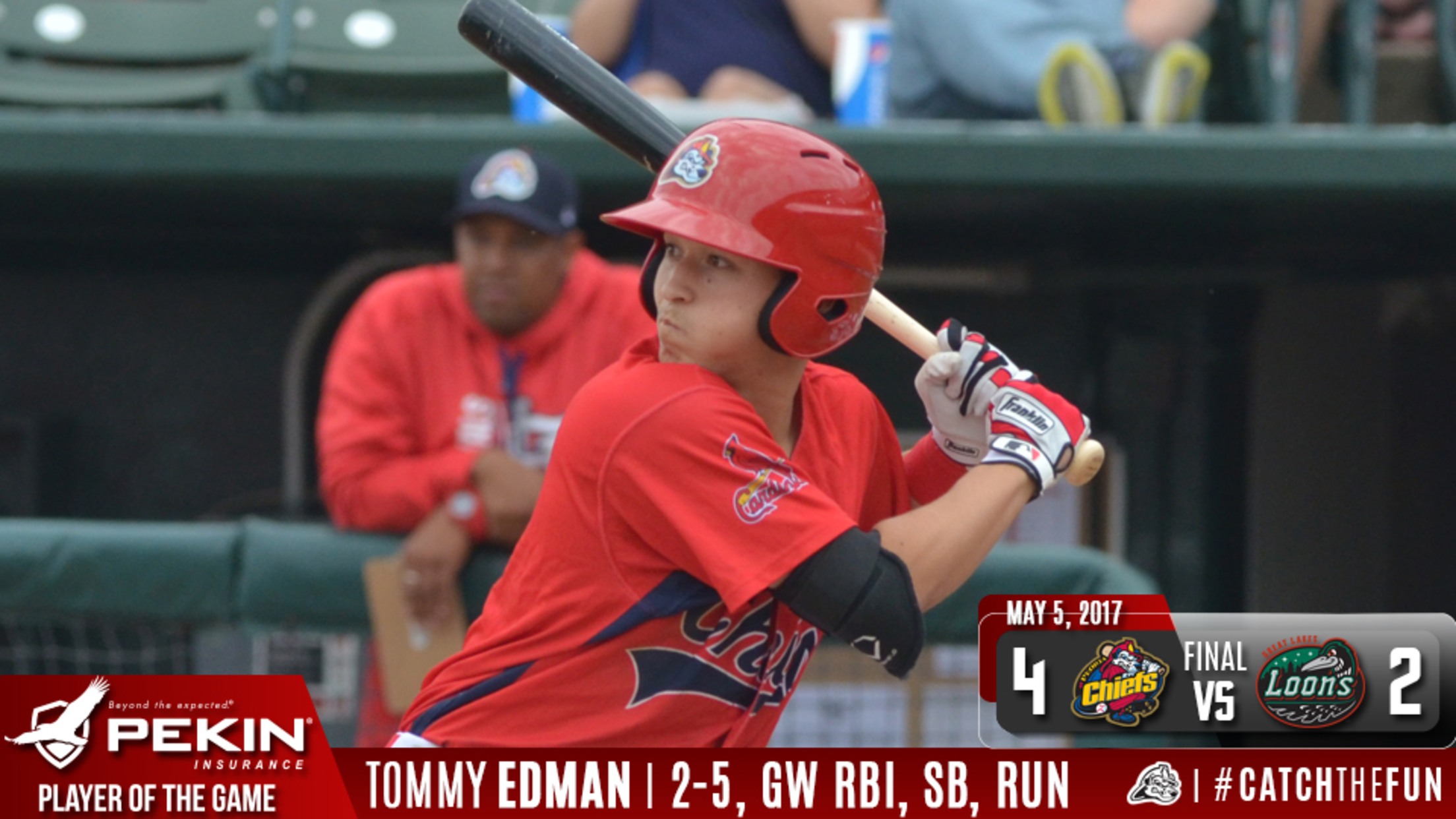 Midland, MI - The Peoria Chiefs erased an early two-run deficit with four unanswered runs including two in the ninth inning for a 4-2 win over the Great Lakes Loons on Friday night. The series opening win moves the Chiefs to 11-14 on the season with two games left on the