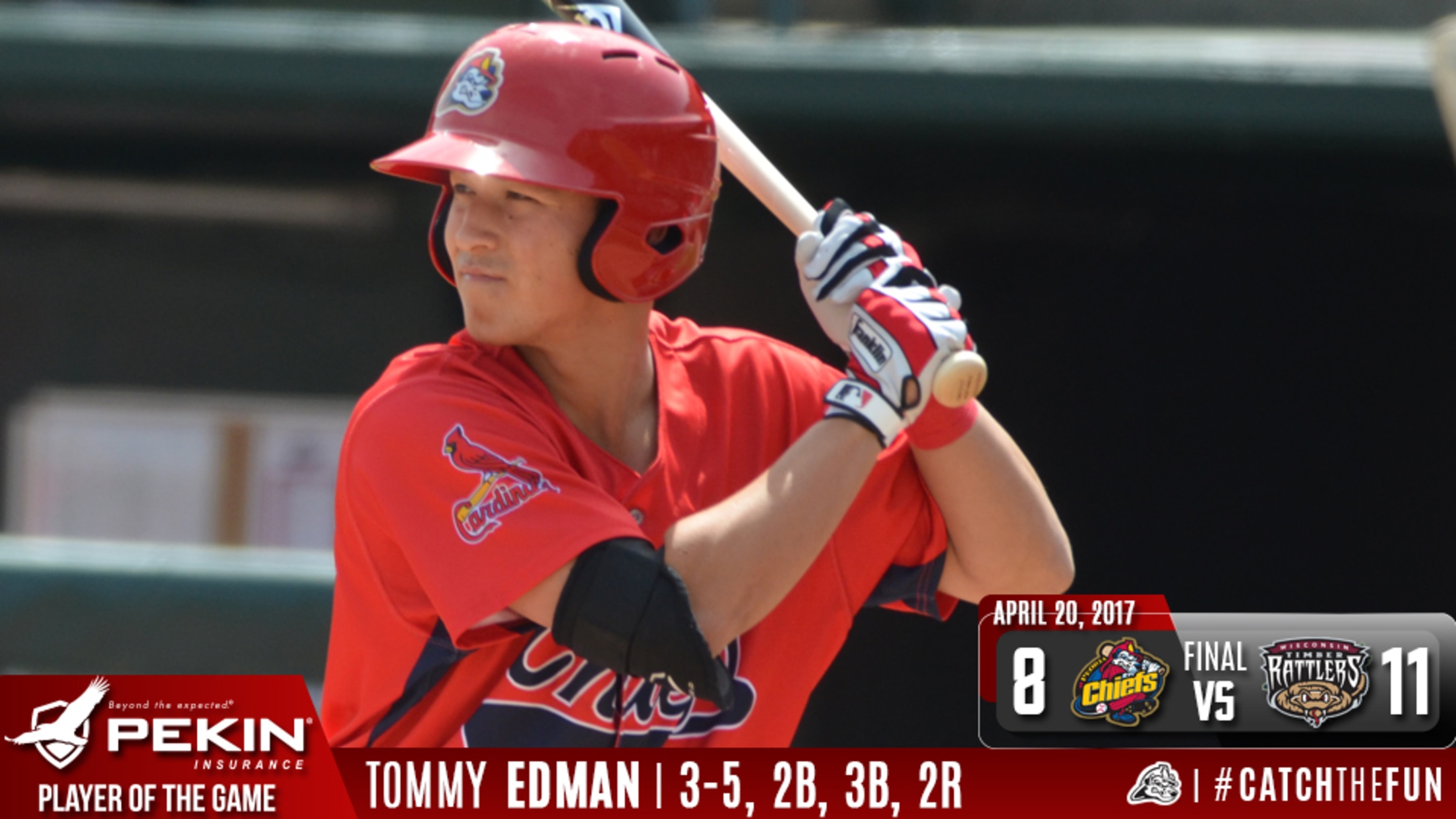 Cardinals prospect Tommy Edman led the way Wednesday afternoon, collecting four of Peoria's 21 hits -- the most any team has posted in the Midwest League this season -- in a 15-3 pasting of visiting Cedar Rapids.A sixth-round pick out of Stanford in 2016, Edman finished the day 4-for-6 with
