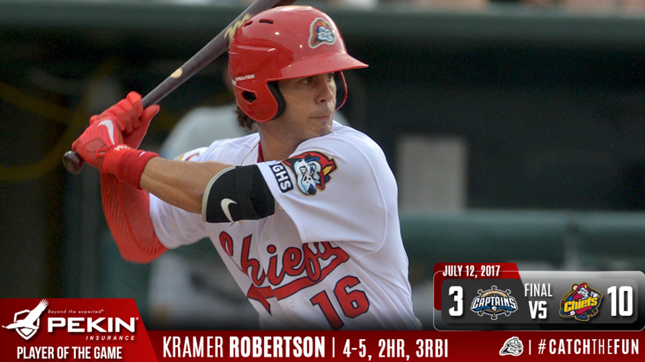 Peoria, IL - In his first game at Dozer Park, Kramer Robertson recorded four hits, including his first two career home runs and drove in three to lift the Peoria Chiefs past the Lake County Captains 10-3 on Wednesday night in game one of the series. With the win, the