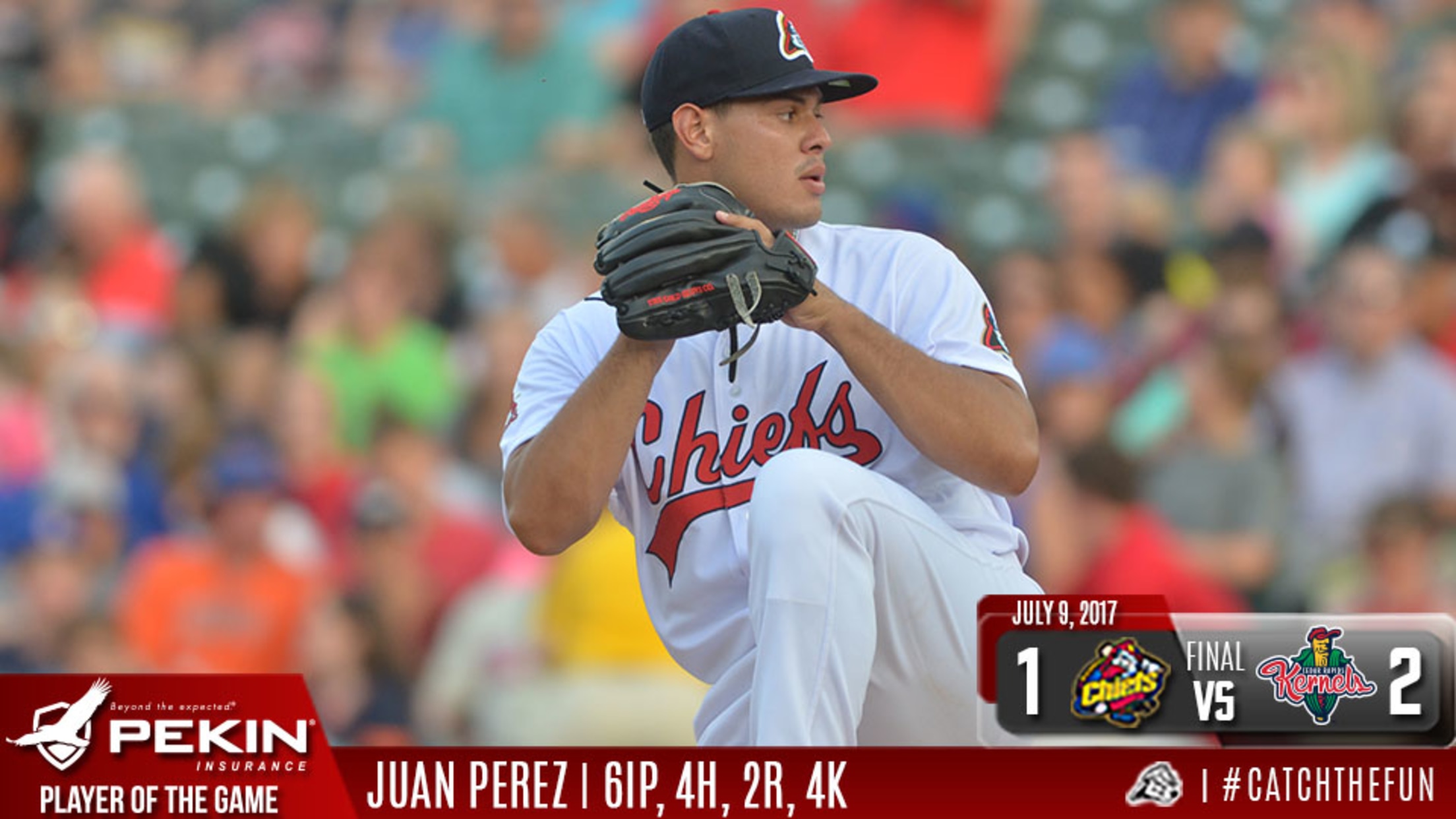 Cedar Rapids, IA - The Peoria Chiefs were held to three hits, just one after the second inning, in a 2-1 loss to the Cedar Rapids Kernels on Sunday afternoon. At 10-8 in the second half, the Chiefs will attempt to avoid being swept in the four-game series on Monday afternoon.