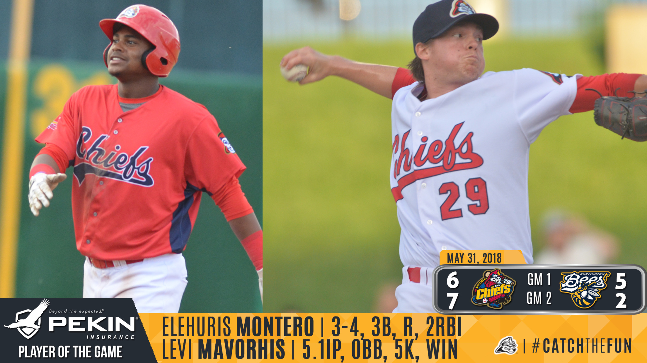 Peoria, IL - The Peoria Chiefs walked off the Burlington Bees in game one of the doubleheader 6-5 and then used a six-run fourth inning in game two for a 7-2 victory to pull off a rare five-game series sweep. The Chiefs improved to 30-24 overall and will travel to