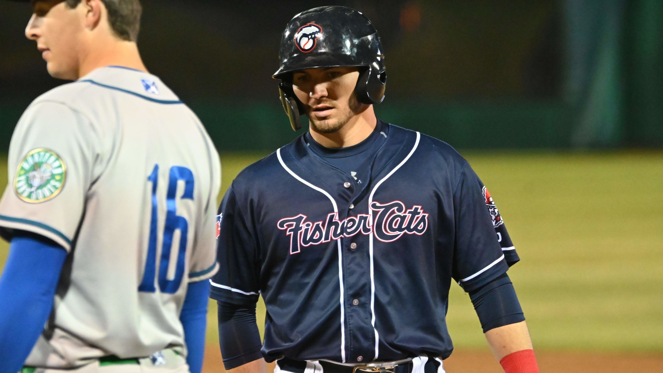 Manchester, N.H. – On a beautiful Saturday night at Delta Dental Stadium, a standing-room only crowd of 7,283 watched the New Hampshire Fisher Cats (23-26) split a doubleheader against the Portland Sea Dogs (23-27). New Hampshire rebranded as the Granite State Mountain Men in game one and as the long-awaited