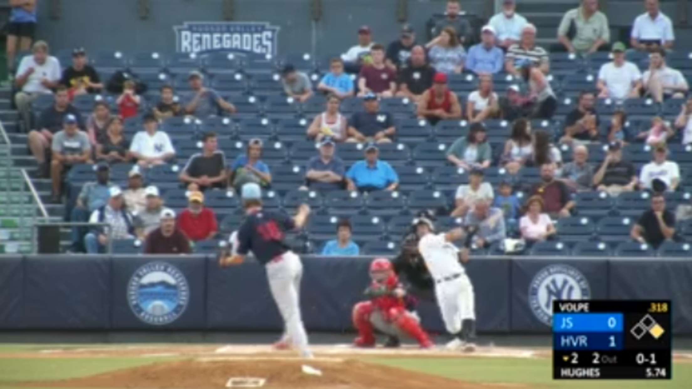 When the Hudson Valley Renegades returned home from their trip to Brooklyn, they only had one home run to show for their six games. In the Renegades 7-4 win on Tuesday night against the Jersey Shore BlueClaws, they hit three home runs, one each from Anthony Volpe, Pat DeMarco, and