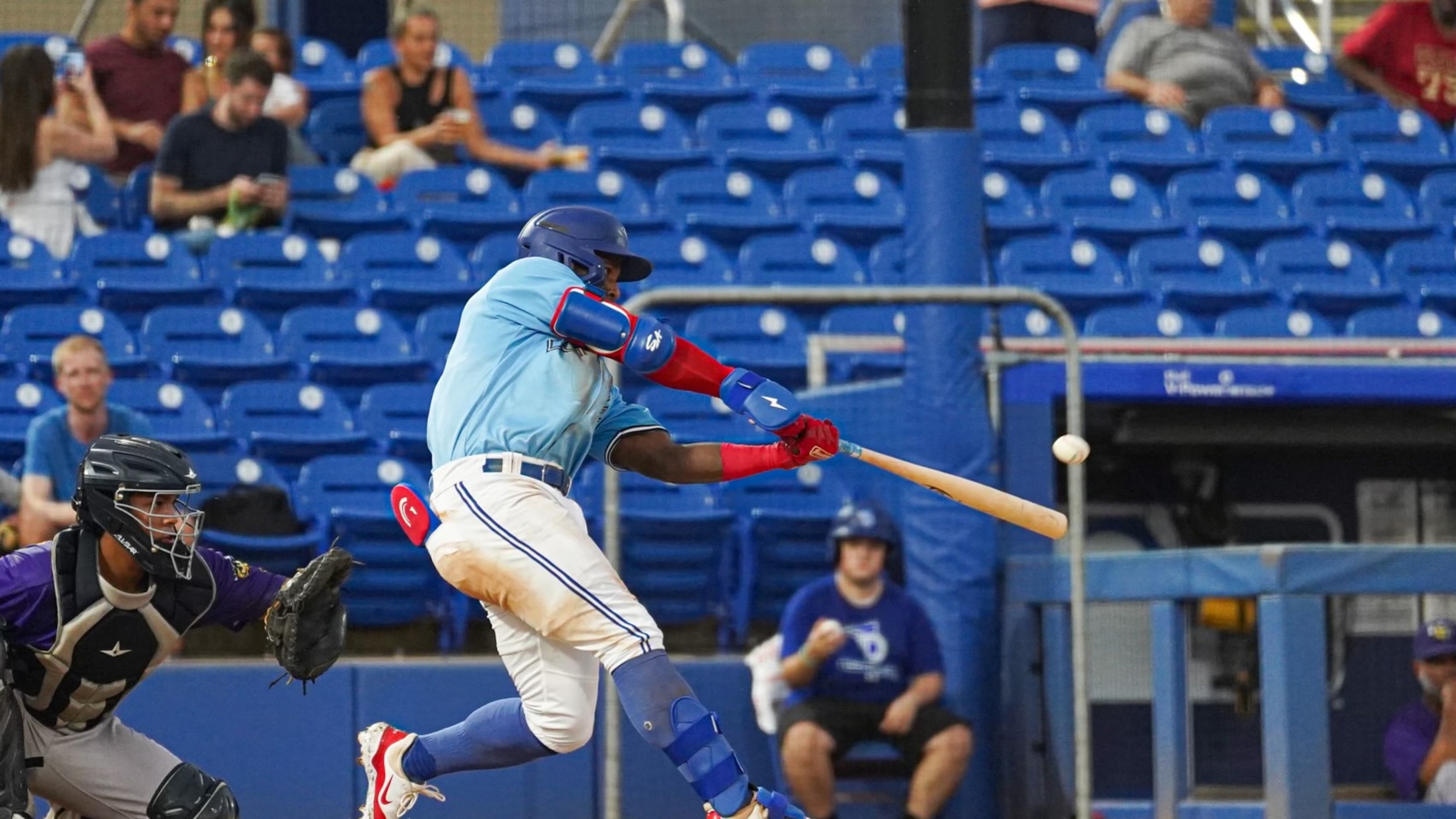 DUNEDIN, FL – Following a 6-0 loss to Bradenton in the completion of Thursday’s suspended game, the Blue Jays raced to a 10-1 victory in game two behind a two-home run, eight-RBI performance from Victor Arias on Friday night at TD Ballpark. Eight RBIs in a single game are the
