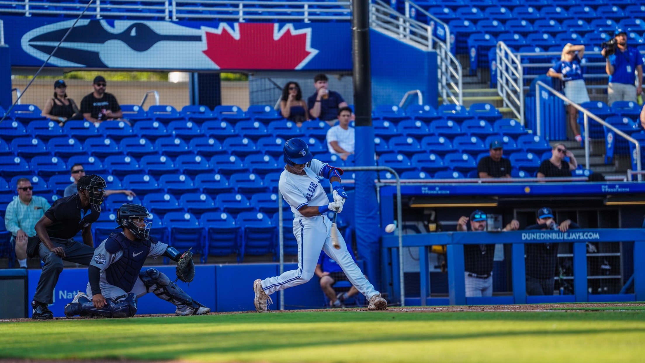 DUNEDIN, FL – Tampa used two late runs to down Dunedin 9-8 in a three-hour slugfest on Wednesday night at TD Ballpark. Dunedin fell in an early hole, as Tampa pushed in three first inning runs, using two hits and three walks against Jays starter Gage Stanifer to open a