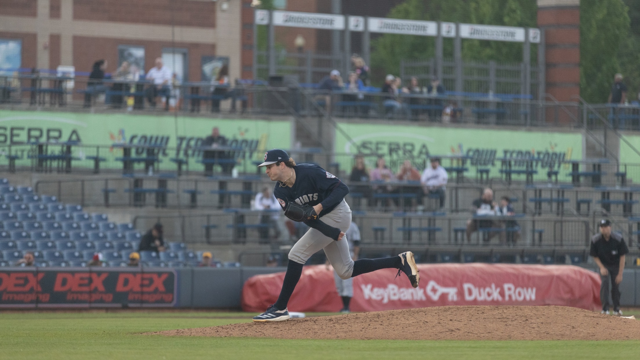 The Somerset Patriots defeated the Akron RubberDucks in the finale of a six-game series at TD Bank Ballpark in Bridgewater, N.J. on Sunday by a score of 3-1. With an attendance of 7,516, the Patriots played in front of their largest crowd of the season at TD Bank Ballpark. All