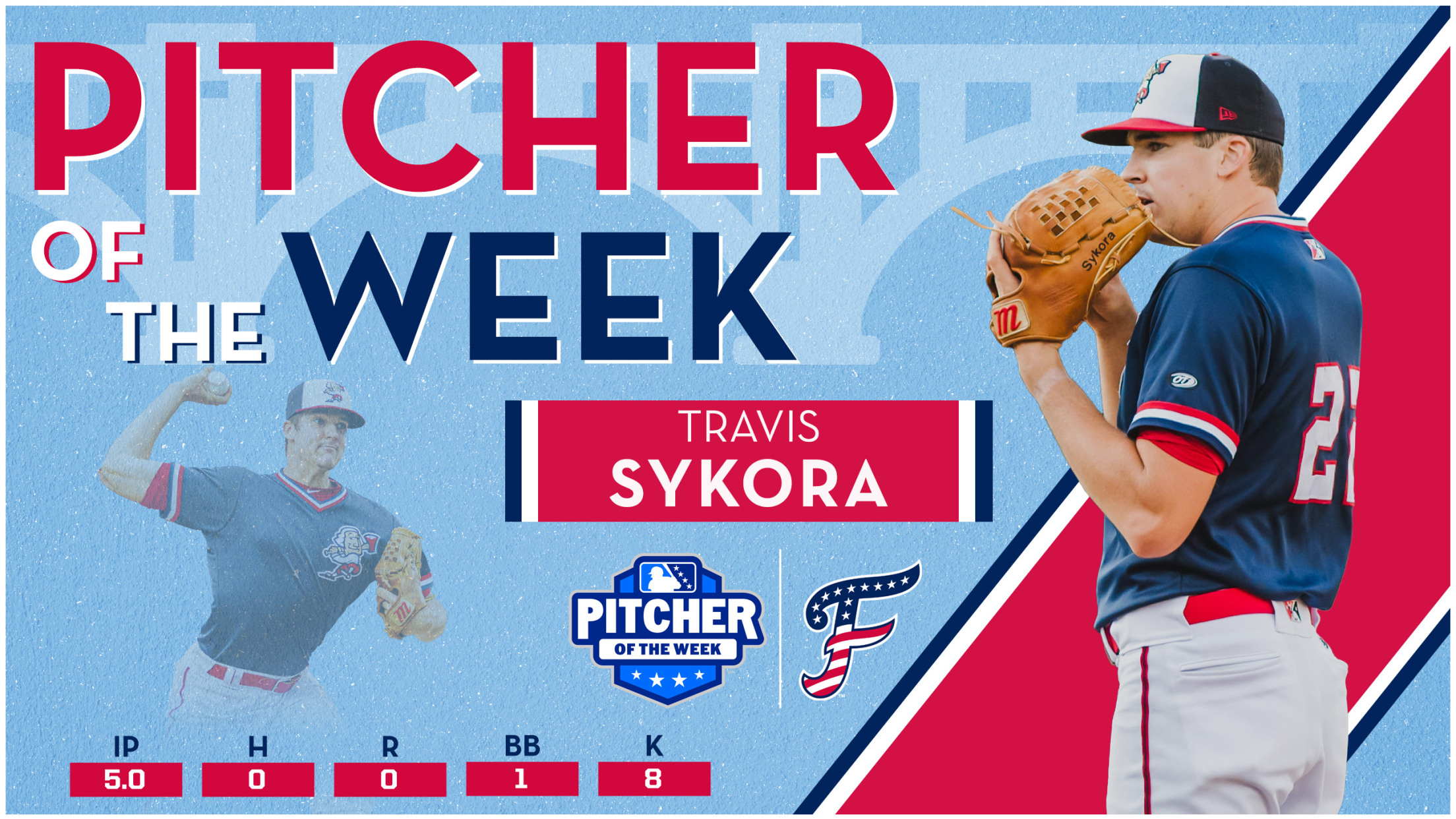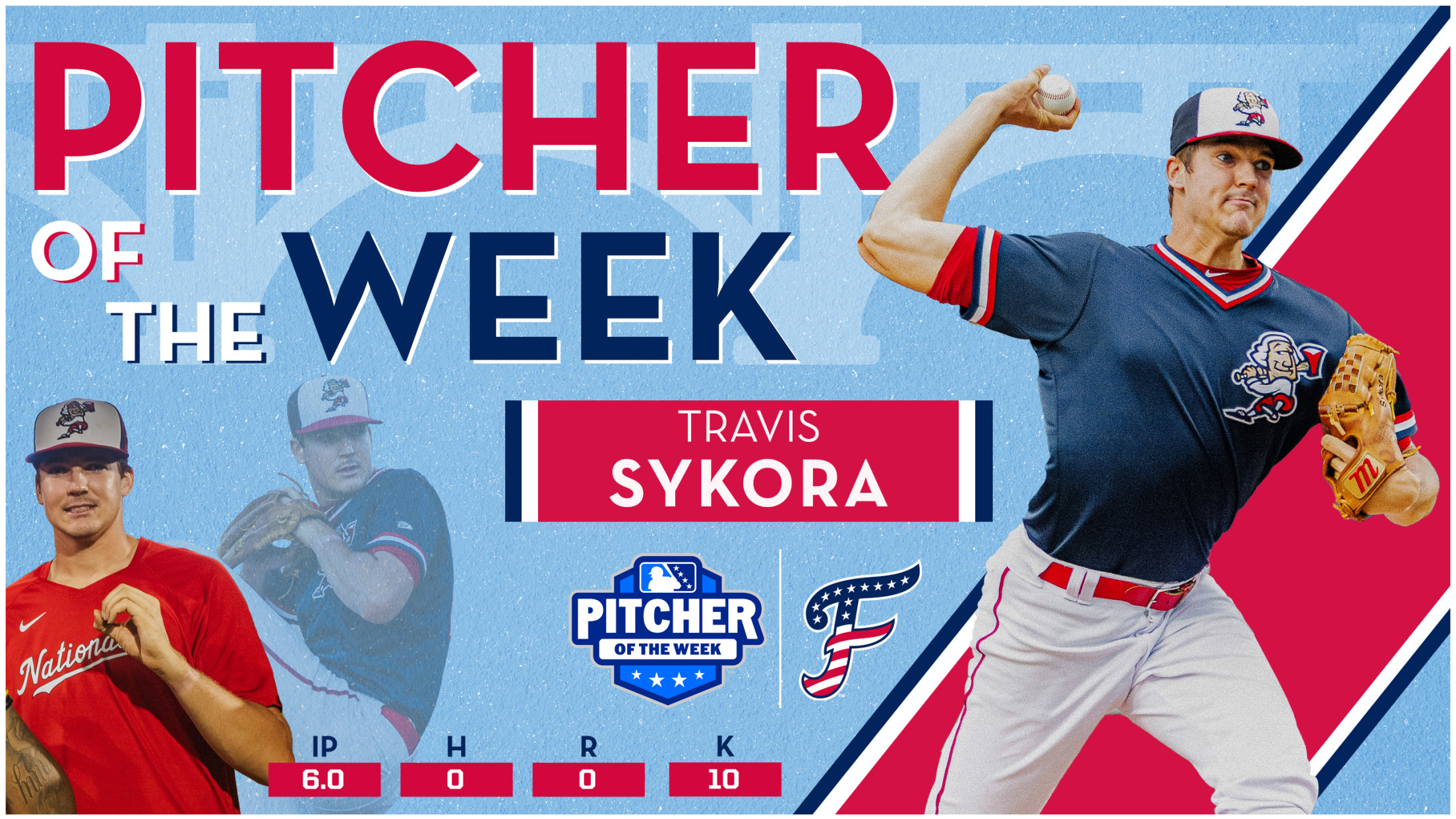 FREDERICKSBURG, VA - For the second straight week, Minor League Baseball has announced FredNat starting pitcher Travis Sykora as the Carolina League's Pitcher of the Week. Sykora becomes the first pitcher league-wide this season to win the award in back-to-back weeks.