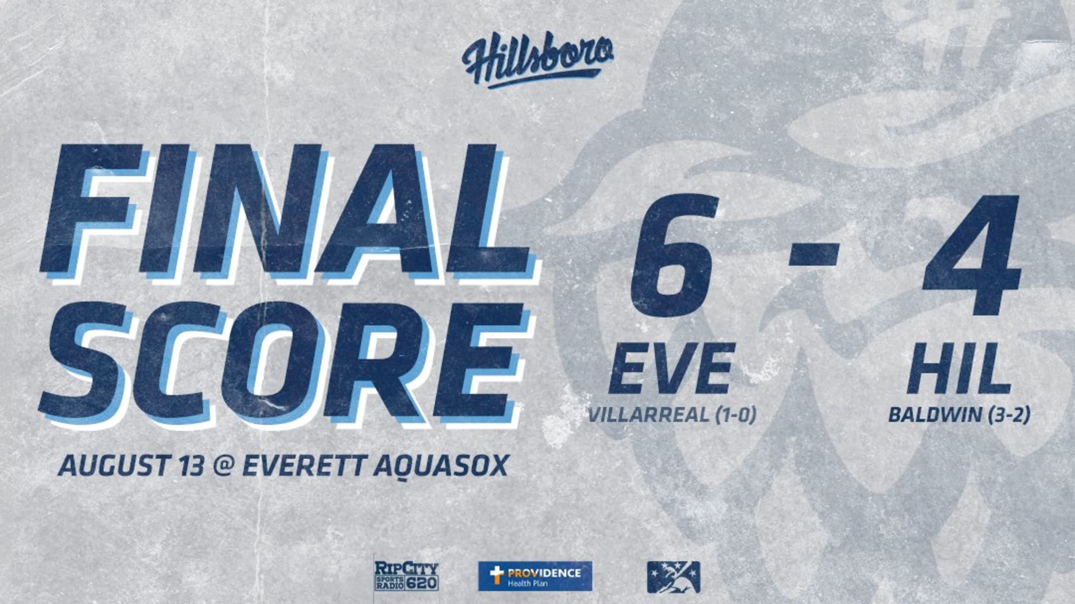 Hillsboro returns home to take on the Boise Hawks tomorrow night at 7:05 pm. The first pitch can be heard on Rip City Radio 620 and the pregame show beginning at 6:35pm.