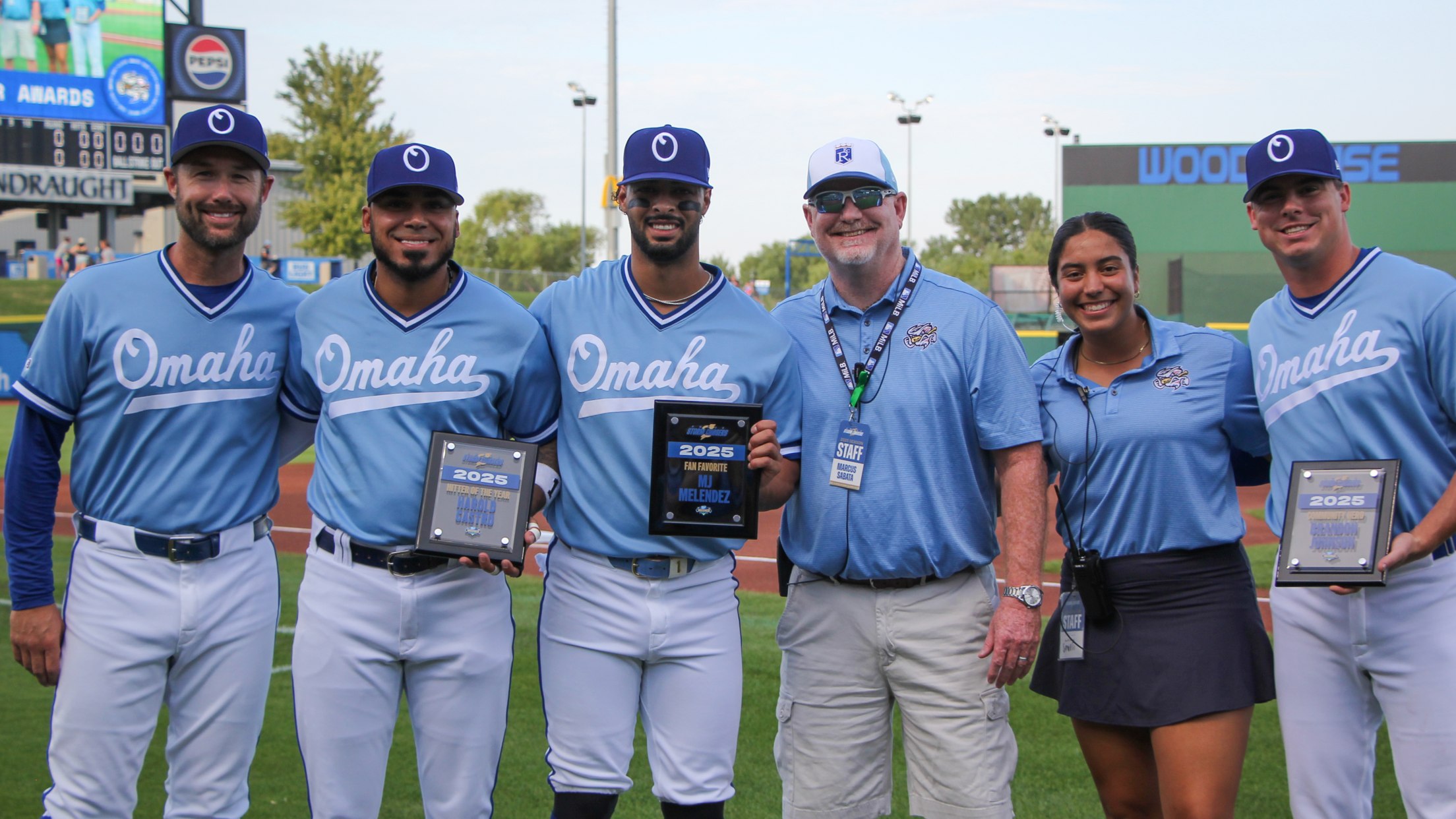 PAPILLION, NEB. — The Omaha Storm Chasers announced their annual awards for the 2025 season on Fan Appreciation Night, before the game on Friday September 12. Carter Jensen was recognized as the 2025 Steve Pivovar Prospect of the Year. After beginning 2025 with Double-A Northwest Arkansas, Jensen made his Triple-A