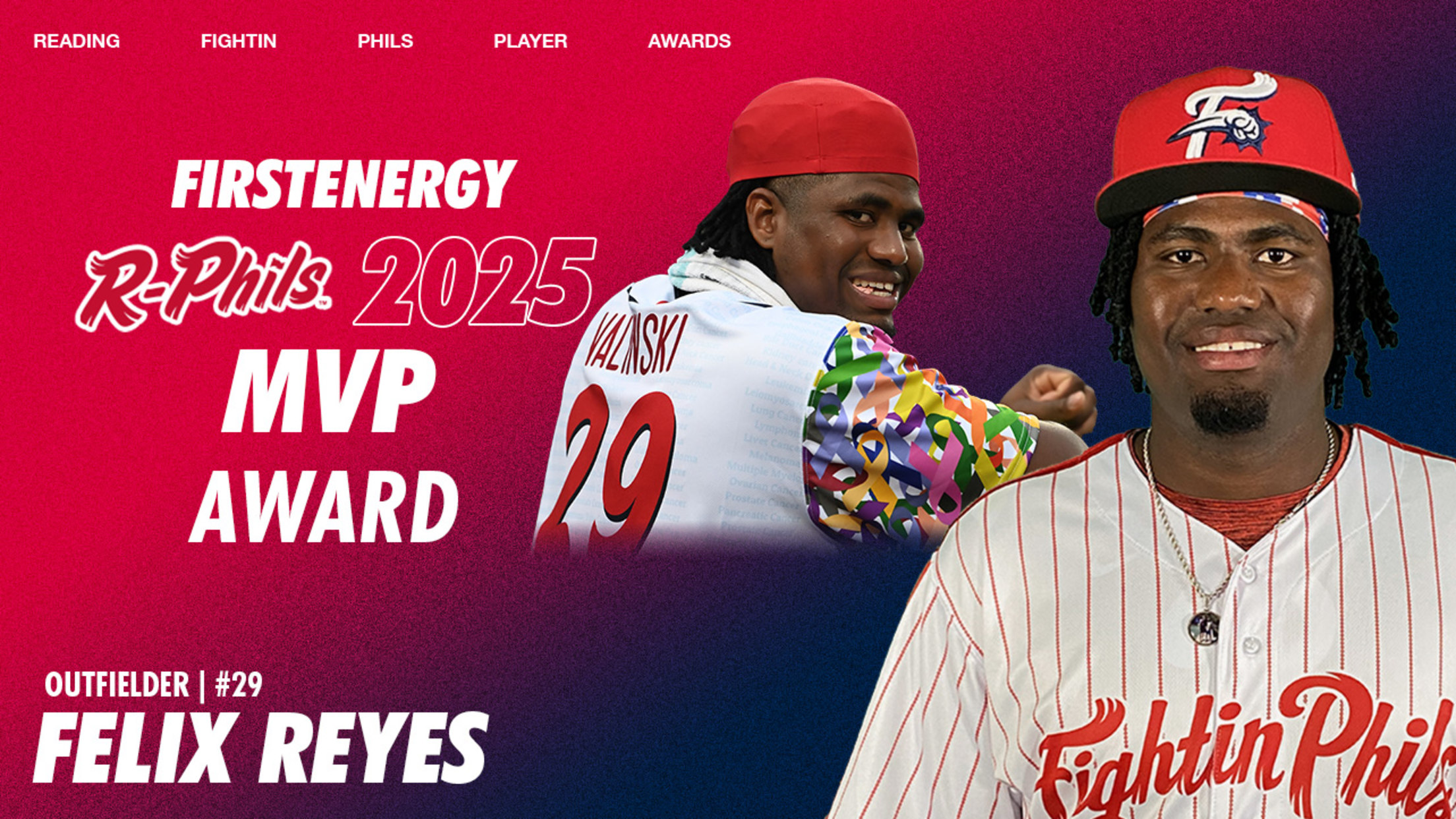 (Reading, PA) - Major League Baseball announced on Tuesday that Reading Fightin Phils infielder/outfielder Felix Reyes was named the 2025 Eastern League Most Valuable Player. Reyes' MVP Award marks the ninth time in franchise history that a Fightin Phil has captured the distinction. He is the first R-Phil to win