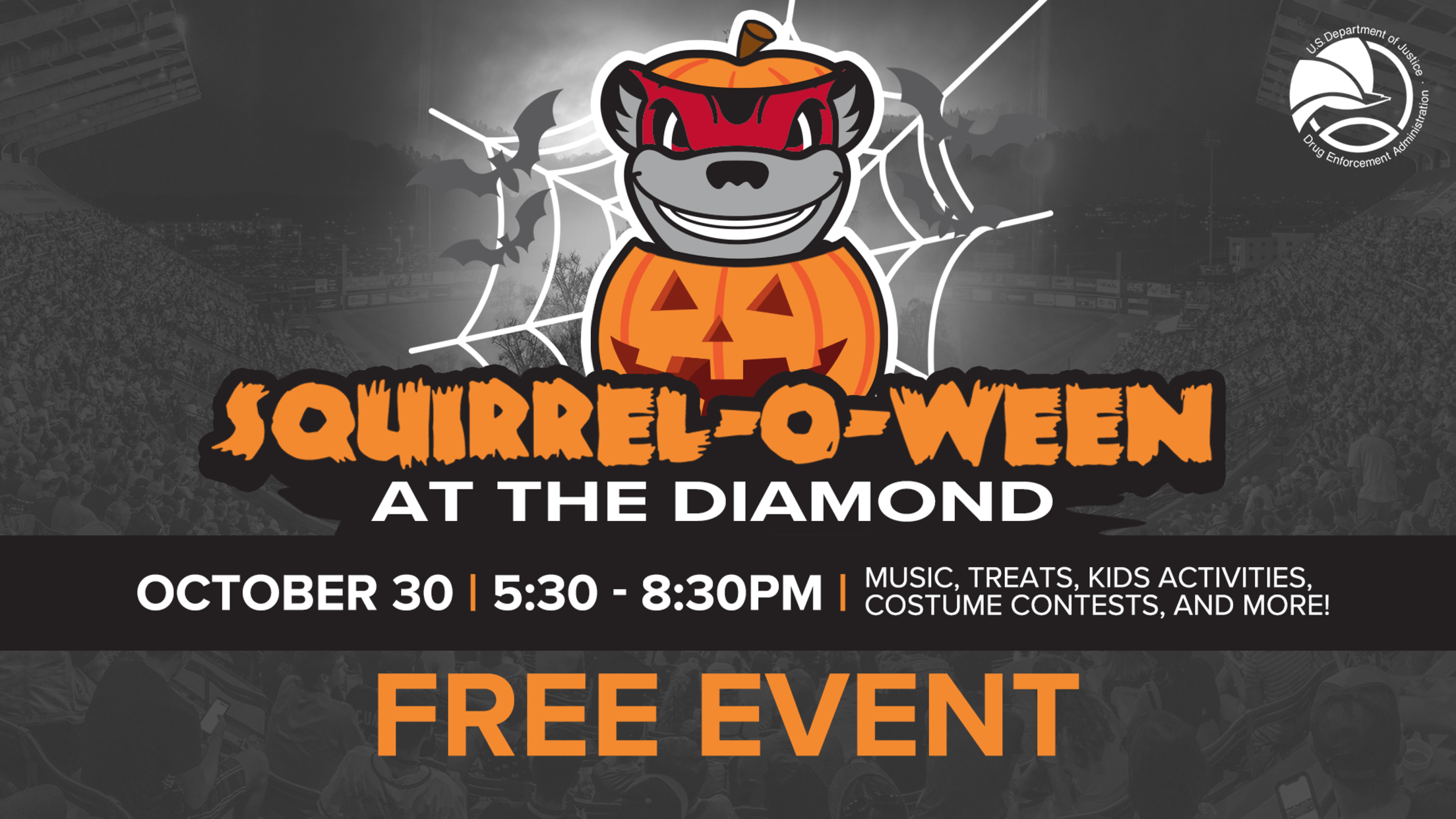 RICHMOND, Va. – The Richmond Flying Squirrels will host Squirrel-O-Ween, an annual Halloween celebration, at The Diamond on Thursday, Oct. 30. Squirrel-O-Ween 2025 presented by the Drug Enforcement Administration is a free event from 5:30-8:30 p.m. at The Diamond. Squirrel-O-Ween provides a safe and funn environment for children to trick-or-treat