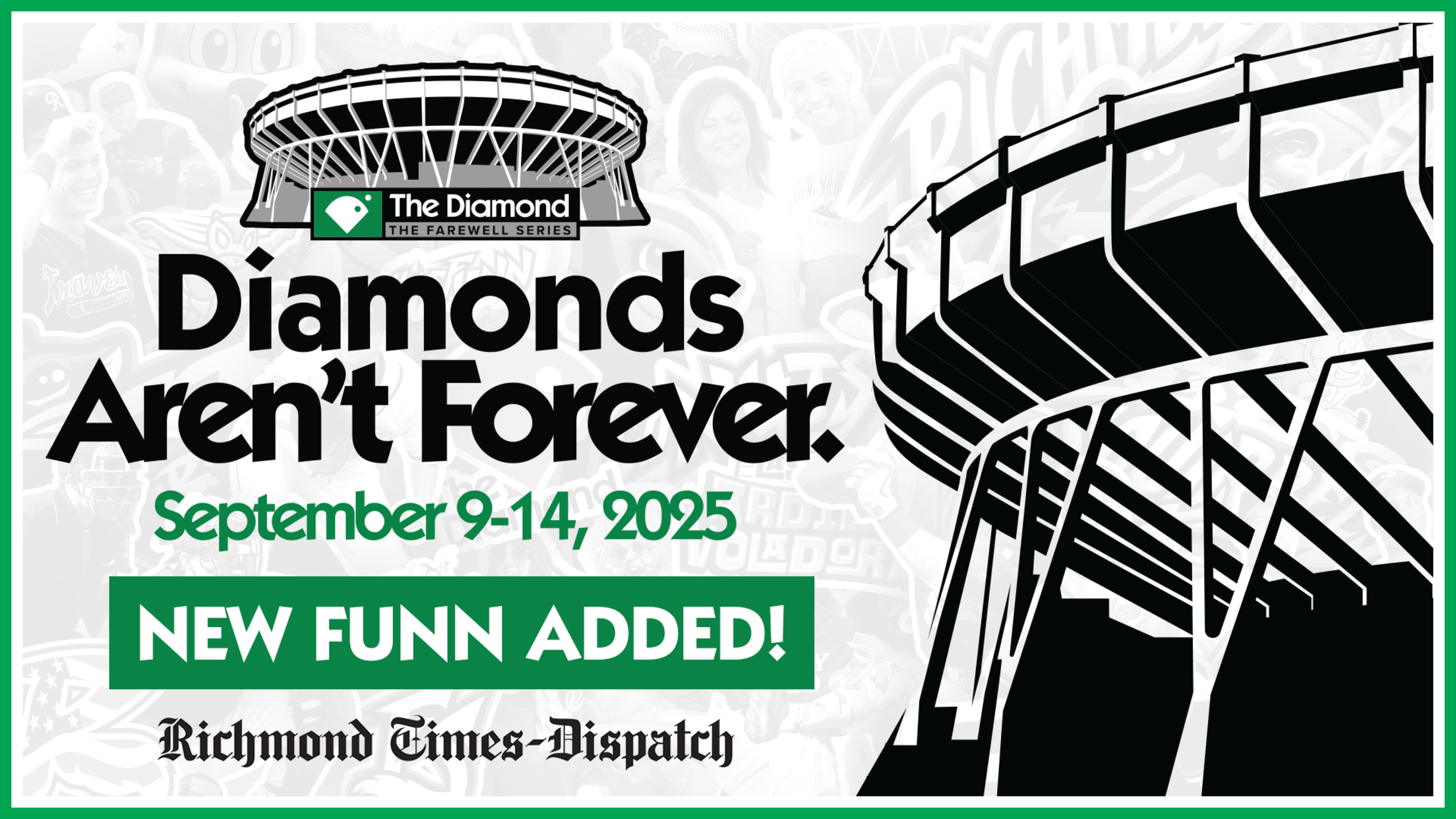 RICHMOND, Va. – The Richmond Flying Squirrels on Thursday announced additional promotions for Diamonds Aren't Forever: The Farewell Series presented by Richmond Times-Dispatch, next week’s final series at The Diamond, including a “Hot Dog Happy Hour,” former player appearances and more.