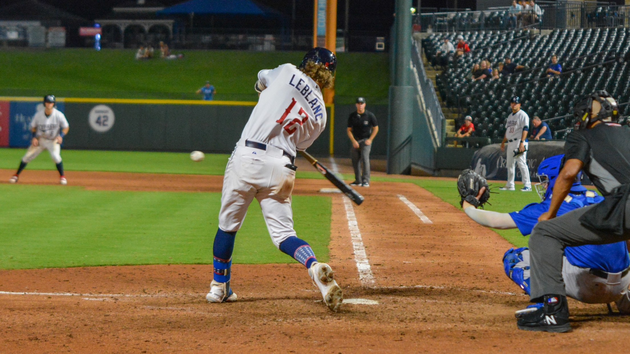 ROUND ROCK, Texas – A grand slam from SS Charles Leblanc helped the Round Rock Express (40-43) to a 7-5 win over the Sugar Land Skeeters (46-36) on Monday night at Dell Diamond. Facing a 5-2 deficit in the sixth, the Express rallied for five runs to claim a series lead over the Skeeters.