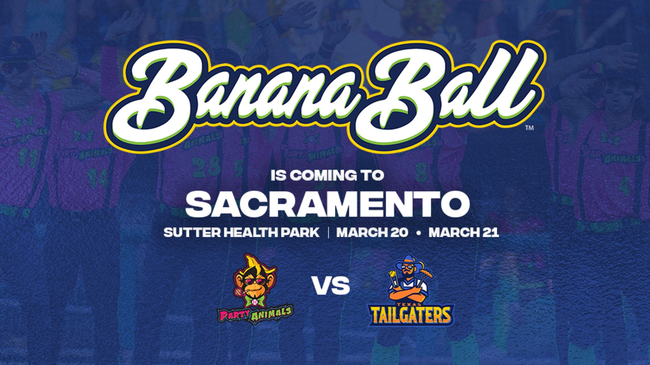 As announced in the Banana Ball Selection Show on Oct. 9, the Party Animals have chosen Sacramento and Sutter Health Park as the home of their two-game series in 2026 on Friday, March 20 and Saturday, March 21. This will be the third year the Party Animals play in West Sacramento and the first visit for the Texas Tailgaters.