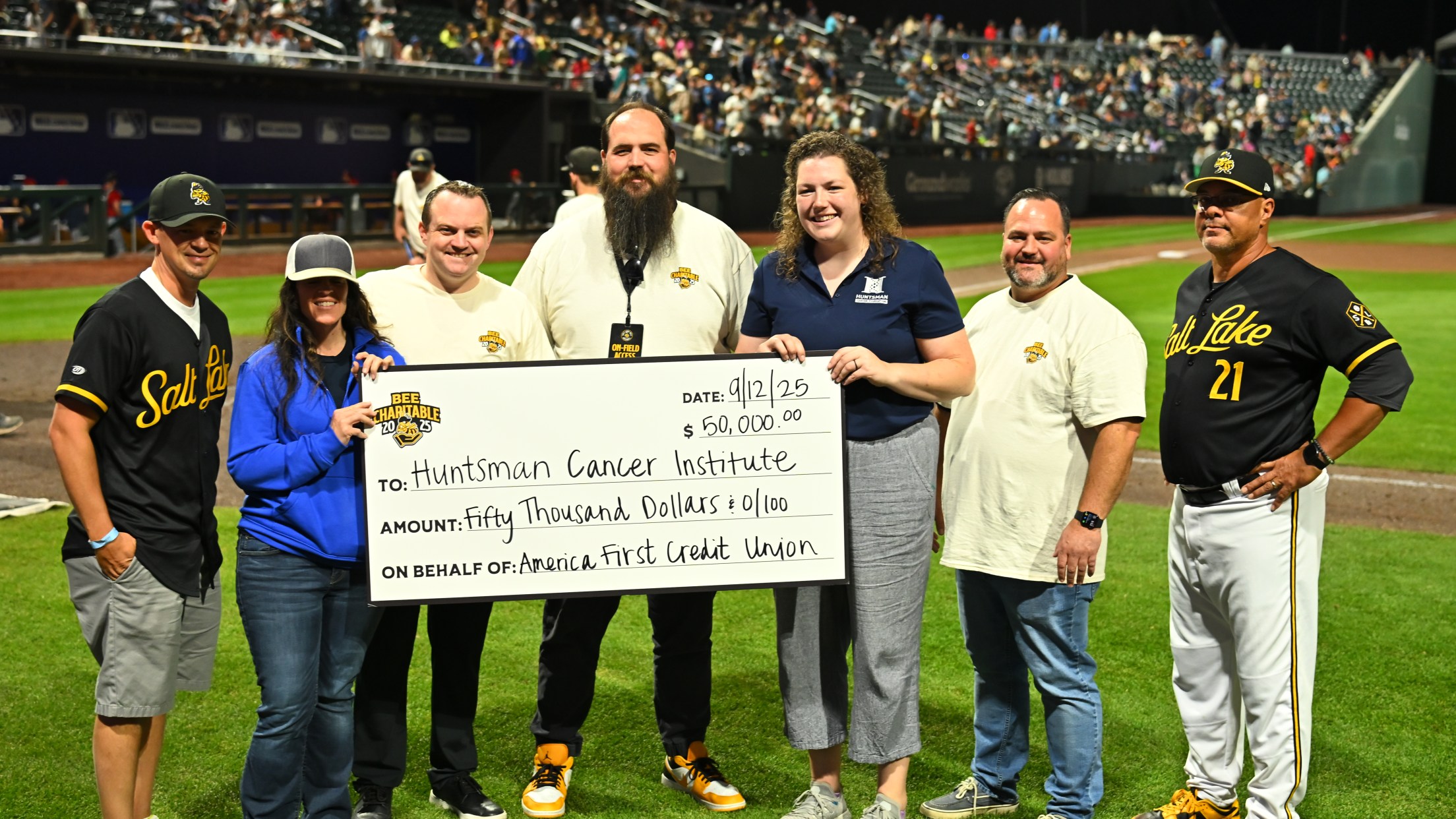 SOUTH JORDAN, Utah (Sept. 24, 2025) – The Salt Lake Bees hosted their inaugural Bee Charitable Night on Friday, September 12, transforming The Ballpark at America First Square into a celebration of community service and impact. In partnership with Miller Sports + Entertainment, America First Credit Union, Larry H. Miller