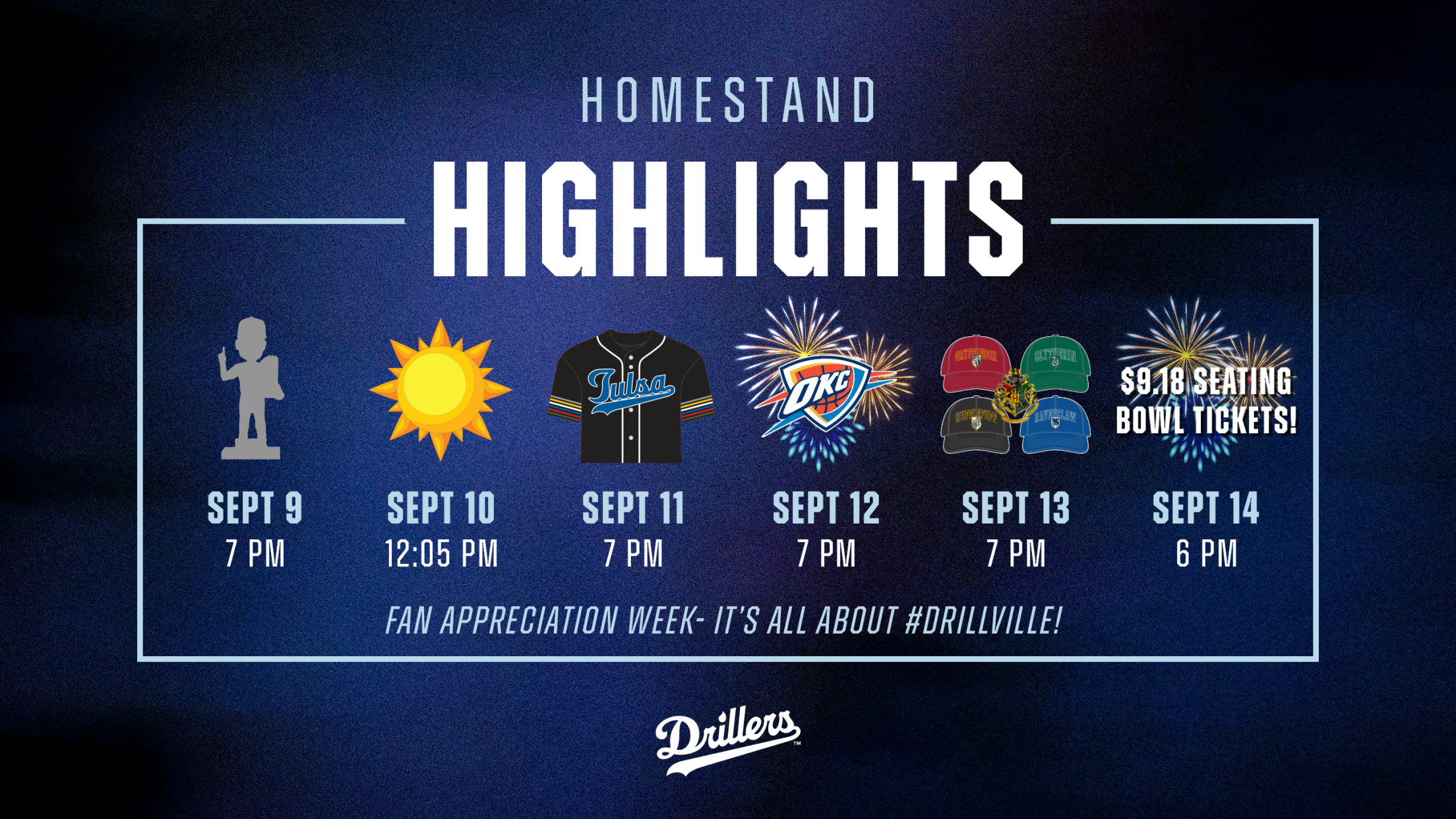 The Tulsa Drillers will return to ONOEK Field on Tuesday, September 9 to open their final home stand of the 2025 regular season, and it will be the most important series of the year. The Drillers will host the Arkansas Travelers (Seattle Mariners) in a six-game series that will run